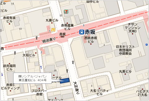 地下鉄空港線赤坂駅下車→A番出口より出る→明治通りを天神方面へ